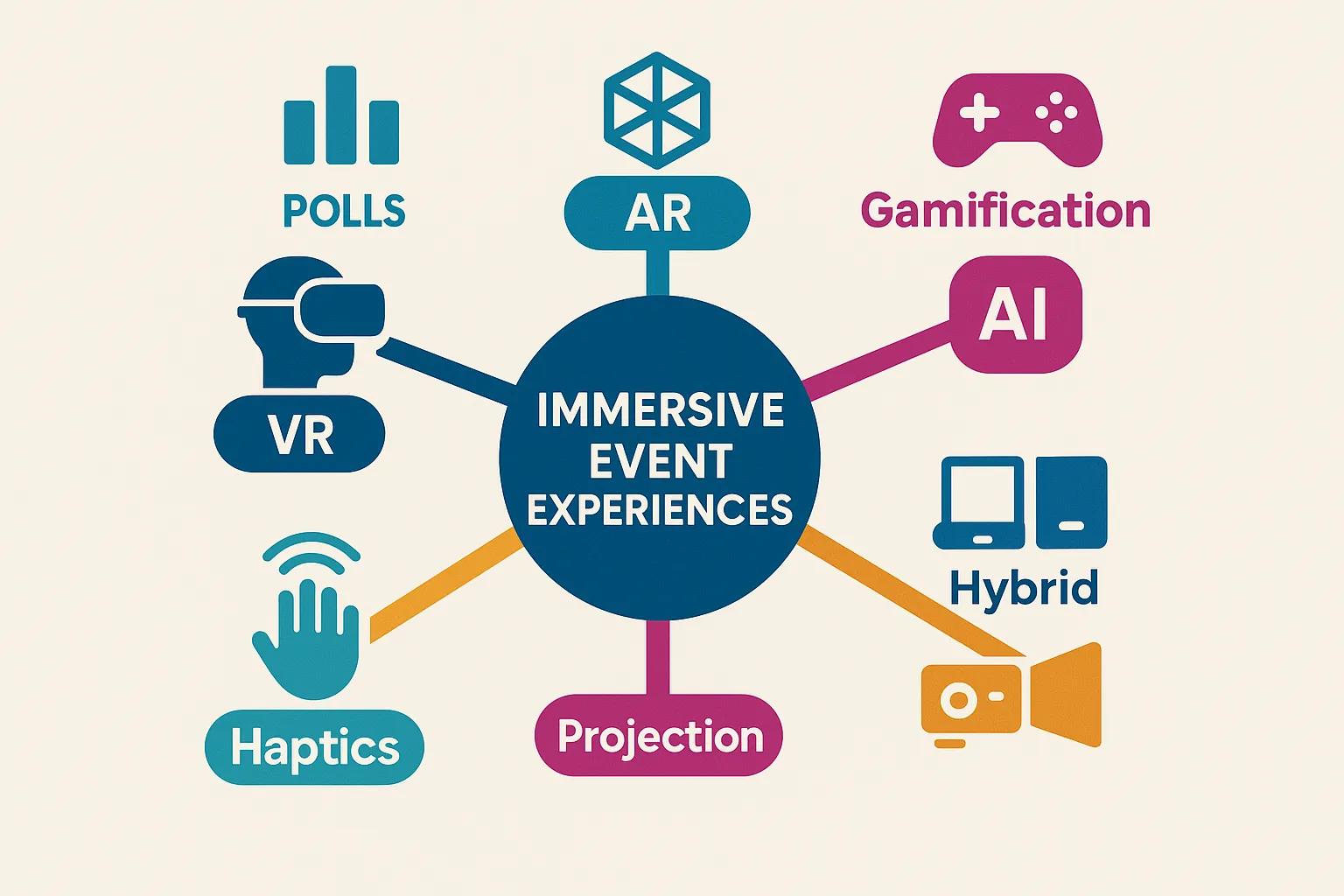 Immersive technologies such as VR, AR, AI, projection mapping, and haptic feedback redefine event engagement by creating dynamic, personalized, and transportive environments.TechnologyMechanismEngagement BenefitVirtual RealityFully simulated 3D environmentsDeep focus and escapism for storytellingAugmented RealityDigital overlays on real-world spacesReal-time interaction and branded overlaysArtificial IntelligenceData-driven content personalizationTailored experiences and predictive insightsProjection MappingSurface projections transforming venuesVisual spectacles that adapt in real timeHaptic FeedbackTactile responses through wearable devicesPhysical immersion and emotional resonanceThis table highlights how each immersive technology leverages different mechanisms to boost audience engagement and set new standards for unique event experiences.